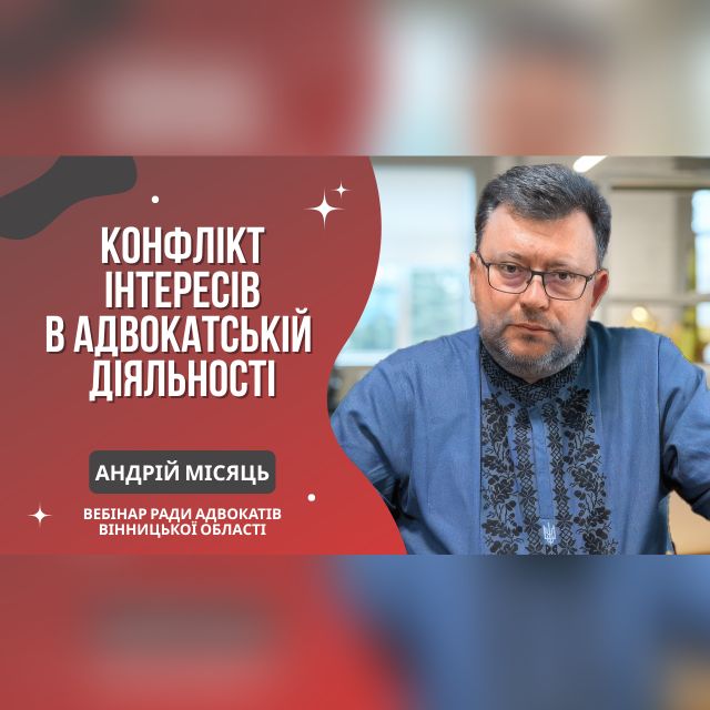 Вебінар Ради адвокатів Вінницької області. Лектор: адвокат, керуючий партнер Адвокатського об’єднання “Адвокатська контора “Місяць і партнери”, заступник голови Вищої кваліфікаційно-дисциплінарної комісії адвокатури, голова громадської організації “Подільська правова ліга”, кандидат юридичних наук, заслужений юрист України – Андрій Петрович МІСЯЦЬ.